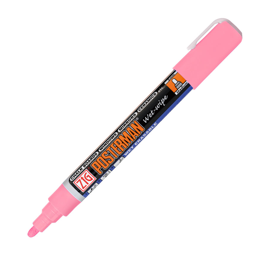 - ZIG Posterman Wet-Wipe chalk markers are suitable for a wide variety of surfaces including glass, whiteboards and chalkboards. Our liquid chalk markers produce a chalk look without a chalk mess.