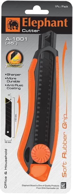 ELEPHANT’s cutter comes with amazing features and functions. The handle is made of Japanese standards certified plastic. Stainless steel blade is fully-sharpened with a snapper clip that snaps the tip of the blade when it becomes dull. The cutter supports 45 degrees cutting and is ideal for cutting papers and corrugated plastic sheets or even handcrafting.