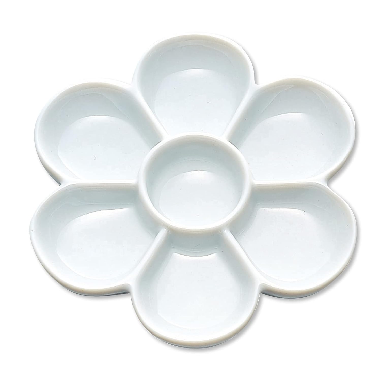 [Ceramic picture plates] Cute, high quality plum-shaped ceramic picture plates. You can use up to seven different colors. This ceramic plate comes from Seto (Aichi Prefecture) in Japan. The size is 15cm x2 cm, 12oz and is a comforable fit in the average palm size and thus very convenient to use. Recommend for both beginners and experienced artists. [Long Lasting] Made of permium, white ceramic material. Due to the nature of ceramics, the Picture Plate does not have a slick surface like plastic palettes do, making it easier to mix paint evenly. Ceramic is also more durable than plastic or other palettes. [Multiple Uses] This palette is washable and has a variety of uses. Ideal for watercolor, acrylic, and oil painting, this tool is both beautiful and functional. We recommend this plum-shaped ceramic plate, not only for use with painting, but also for with Saiboku Shimbi colored ink sticks. The vibrant colors look great on the premium, white plate, and you can mix colors easily. [After use] After each use, be sure to rinse with water and clean completely. Ceramic is especially easy to clean.