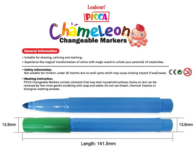 . Washing Instruction - Picca Changeable markers contain colorants that may stain household surfaces,Stains on removed by few times gentle scrubbing with soap and water.