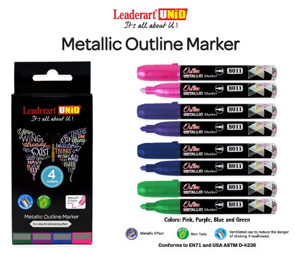 Leaderart UNID Metallic Outline Marker 8011 Pack of 4. Made in Malaysia