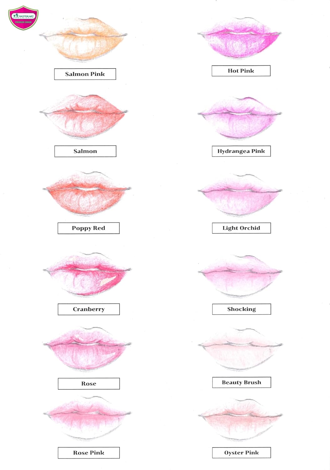 MASTERART Series Pink Pencils Special Collection Set of 12 Colors.