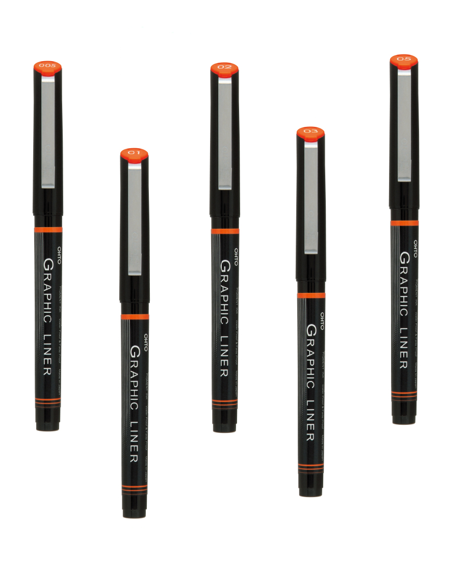 OHTO JAPAN Graphic Liner Needle Point Rollerball Drawing Pen [5 assorted Point].