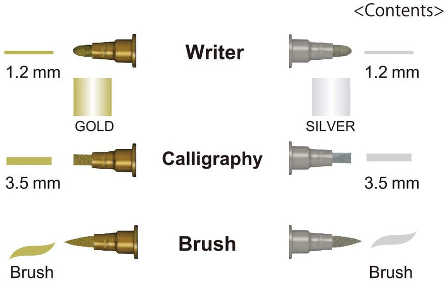 Twin tip marker with gold color on one end and silver color on the other.This assortment set included 3 kinds of gold & silver twin tip markers.