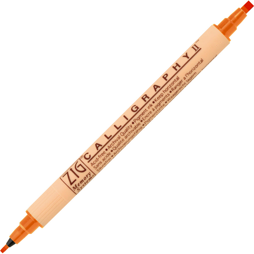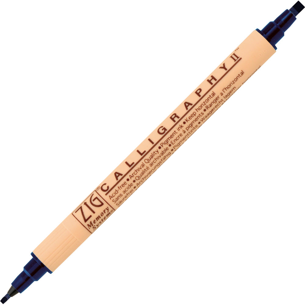 • ZIG Calligraphy II pens are a water-based pigment, dual tipped, that are great for any level of calligraphers. They are lightfast, acid-free and even photo safe; even suitable for paper.